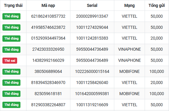 Giúp mình với,mình nạp lần đầu nó báo nỗi, lần thứ 2 nó báo the không có tiền, thẻ mobi 2000. Số seri:102197000009352. Mình cám ơn nhìu