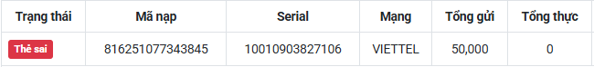 Nguyên văn bởi hungp check giúp thẻ vietel seri 10010903827106 ko đc cộng xu. thanks